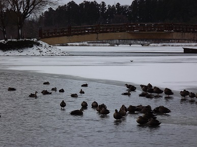鞍掛沼のカモちゃん達も、水面で楽しそうに遊んでおります♪