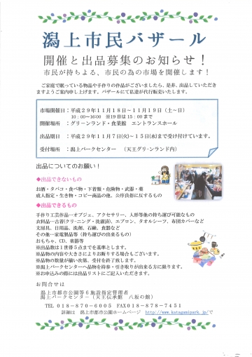 今回で11回目となる潟上市民が持ち寄る、市民の為の市場を天王グリーンランド・食菜館のエントラスホールにて開催致します。