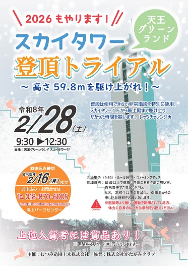 時間を競う”スカイタワー登頂トライアル”を令和8年2月28日㊏に開催します。