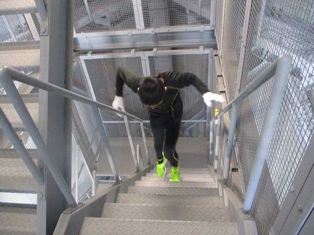 非常階段を特別に使用、1階から最上階まで駆け上がりかかった